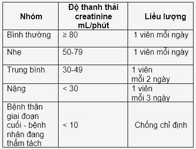 Điều chỉnh liều theo mức độ suy thận theo bảng sau :